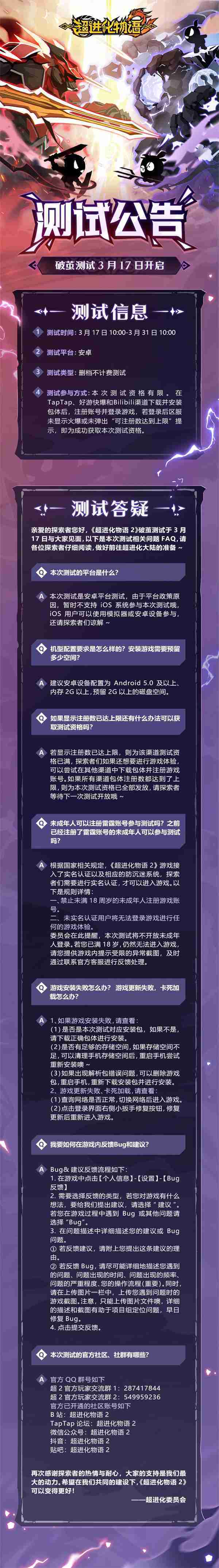 《超進化物語2》首次限號不計費刪檔測試——「破繭測試」將于3月17日開啟,,,隨我們確認測試細節,,,,明天邁出踏上超進化大陸的第一步吧!!!!